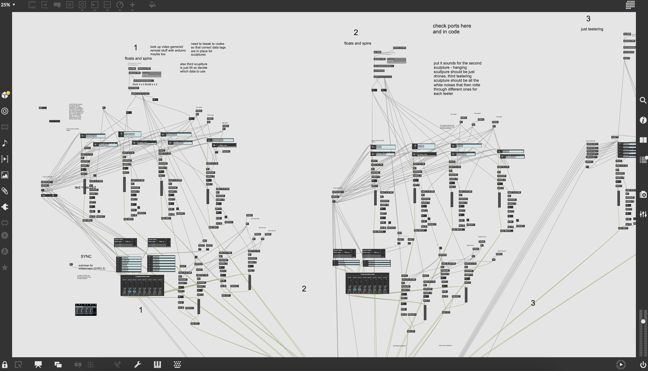 Participants can enter the installation without needing any musical or technical knowledge. When sculptures are touched, spun, or moved, they trigger immersive soundscapes: drones, white noise, and birdcalls. These auditory textures are both reactive and calming. The environment fosters creative expression and nervous system regulation through play, grounding, and sensory feedback.